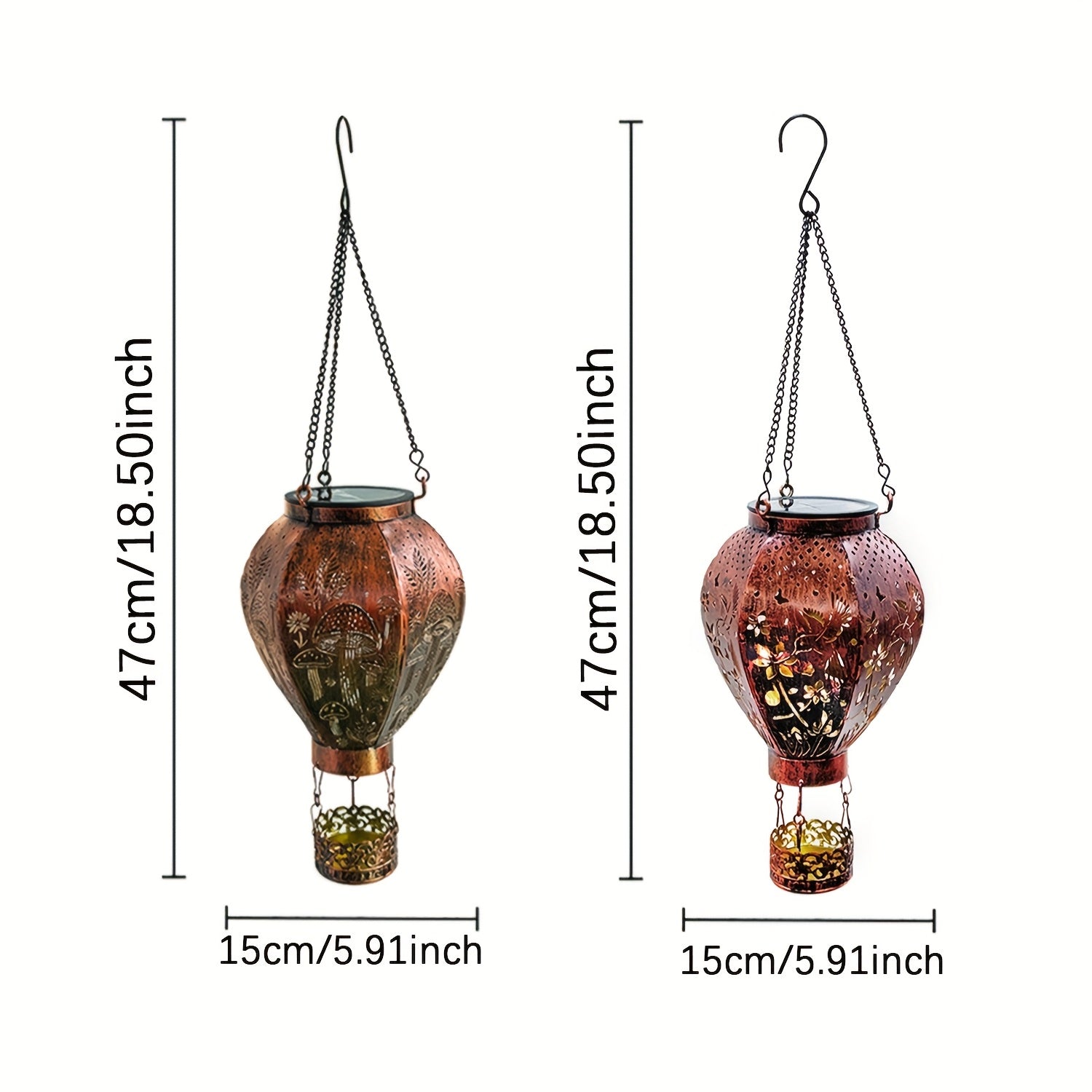 Breng een vleugje nostalgische magie naar je tuin met de AeroGlow vintage, een prachtige zonne-energie luchtballonlamp in retrostijl. Deze unieke metalen lantaarn is ontworpen als een zwevende luchtballon en verspreidt een warme, betoverende gloed zodra de avond valt.