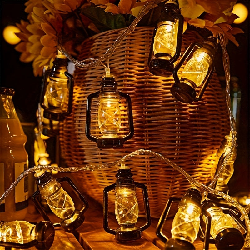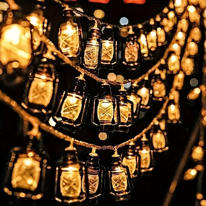 Breng warmte, nostalgie en gezelligheid in elke ruimte met het AuroraGlow vintage LED lantaarn lichtsnoer. Dit charmante lichtsnoer bestaat uit kleine, kerosinefles-vormige lantaarns die een zacht geel licht uitstralen, een subtiele knipoog naar vroegere tijden. Perfect voor wie houdt van dat klassieke kampvuurgevoel, zonder rook of vlam.